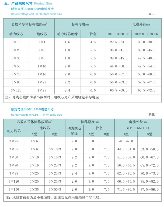 額定電壓1.9/3.3kV及以下采煤機(jī)軟電纜