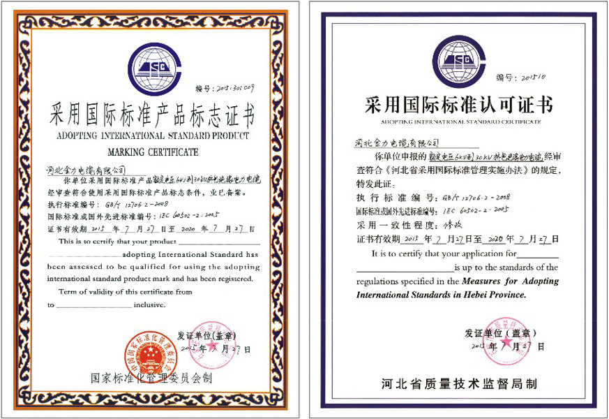 采用國際標(biāo)準(zhǔn)認(rèn)可證書